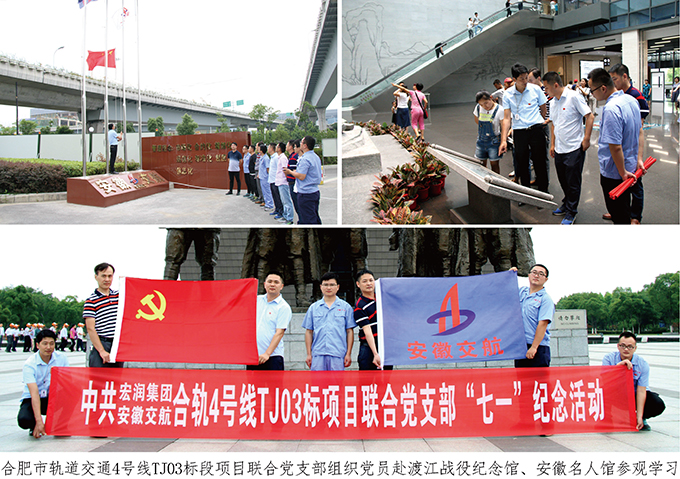 6月12日,機關黨支部組織黨員赴金寨縣烈士紀念館、革命博物館參觀學習。金寨是聞名全國的將軍縣,2016年4月,習近平總書記親臨金寨視察,就傳承紅色基因、推進脫貧攻堅作出重要指示。廣大黨員走在總書記走過的路上,切身感受先輩們的革命情懷和愛國精神,用心領悟總書記的諄諄教導和殷切期望。6月25日,亞父路項目聯(lián)合黨支部組織黨員赴巢湖市南山烈士陵園參觀學習。站在劉衛(wèi)民、應仁書、夏長根、彭和平等烈士墓前,廣大黨員聆聽紅色故事、接受紅色洗禮,無不被烈士們拋頭顱、灑熱血的堅強意志和獻身精神深深震撼。6月28日,蕭楊路項目黨支部組織黨員赴淮海戰(zhàn)役總前委蔡洼會議舊址參觀學習;7月1日,駟馬山-沱澮河項目聯(lián)合黨支部組織黨員赴淮海戰(zhàn)役總前委舊址參觀學習?;春?zhàn)役總前委舊址、總前委蔡洼會議舊址,再現(xiàn)了劉伯承、陳毅、鄧小平、粟裕、譚震林等革命先輩在淮海戰(zhàn)役中的英勇無畏和英雄氣概。廣大黨員駐足深思、銘記于心。6月30日,合肥市軌道交通4號線TJ03標段項目聯(lián)合黨支部組織黨員赴渡江戰(zhàn)役紀念館、安徽名人館參觀學習,感受氣勢恢宏的戰(zhàn)爭場面、聆聽革命前輩的英勇事跡,近距離了解安徽政治、經(jīng)濟、思想、文化、軍事、科技等領域的代表人物,以賢為榜、見賢思齊。