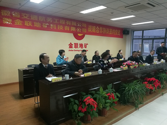 2017年12月6日,安徽省交通航務工程有限公司與安徽金聯(lián)地礦科技有限公司戰(zhàn)略合作簽約協(xié)議在合肥舉行。安徽交航公司黨委書記、董事長、總經(jīng)理李世龍,副總經(jīng)理、總工程師劉朝發(fā),黨委委員、紀委書記、工會主席李楊等領導班子成員及金聯(lián)地礦公司董事長秦月琴,總工程師楊則東,財務總監(jiān)陳英寧等一行出席了簽約儀式。